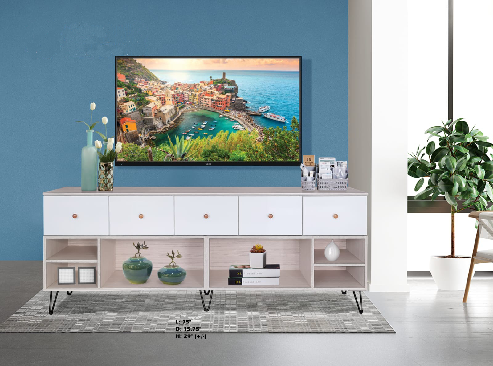 Length: 75″ Depth: 15.75″ Height: 29″