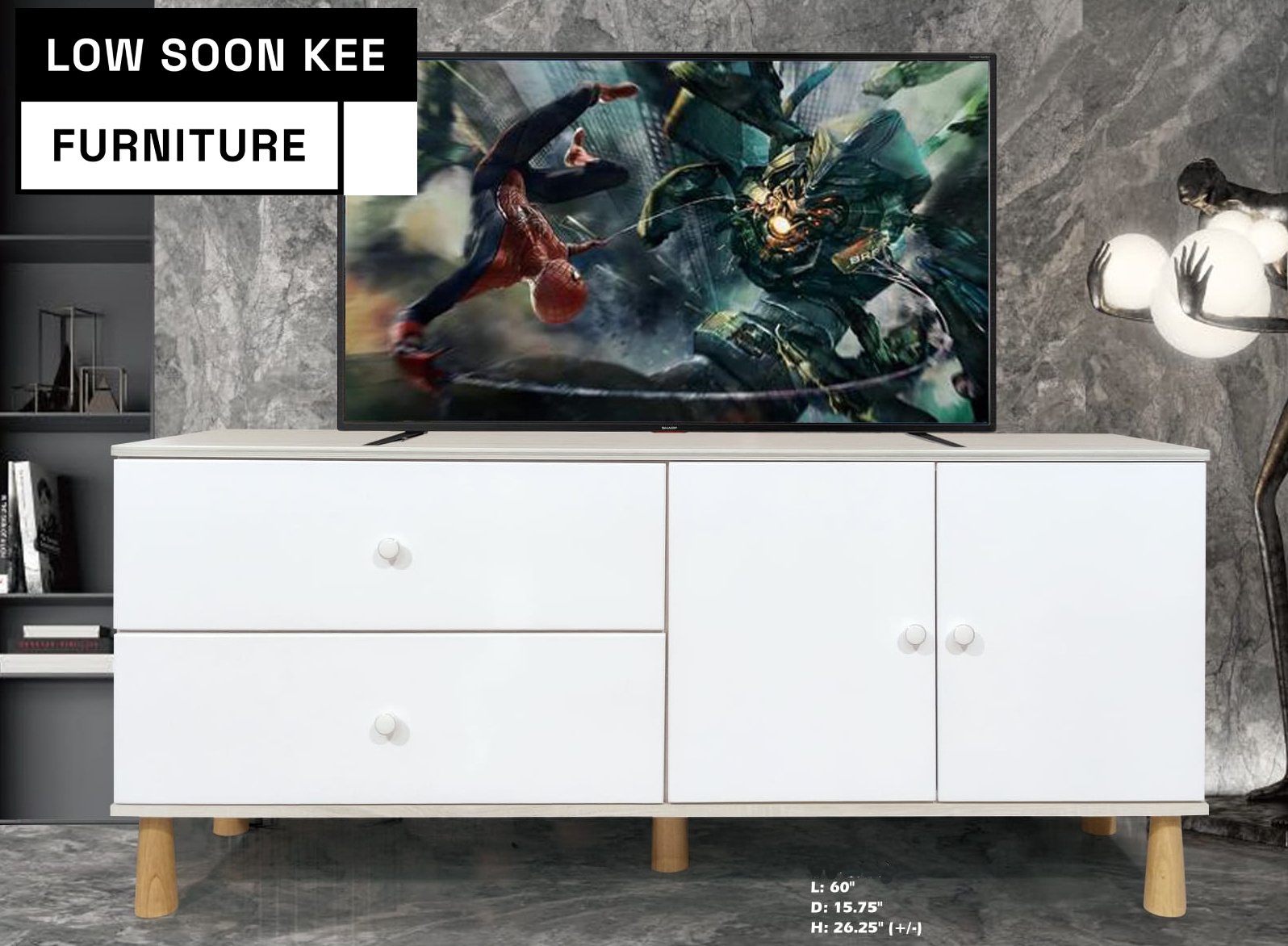 TV Console (Simple 4 Door Storage). Due to processed image, color shown cannot be guaranteed accurate.
